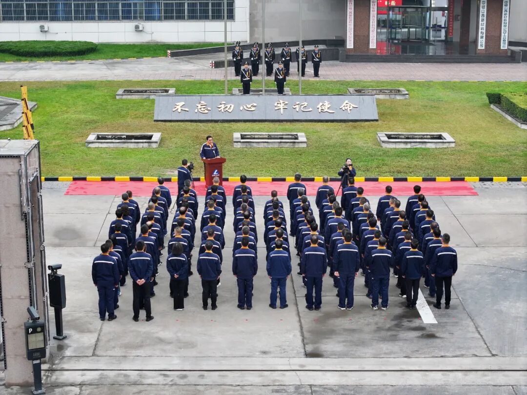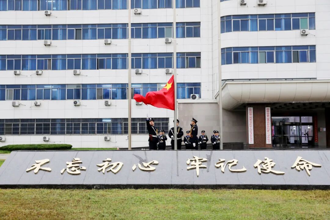 在激昂嘹亮的国歌声中,现场所有人员肃立致敬,行注目礼。整个过程庄重肃穆,尽显对祖国的崇敬之情。